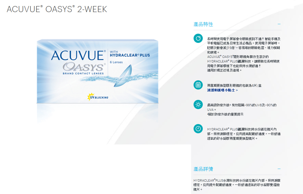 | 建議配戴模式 | 兩星期更換(每日配戴)每兩星期更換新鏡片 |
