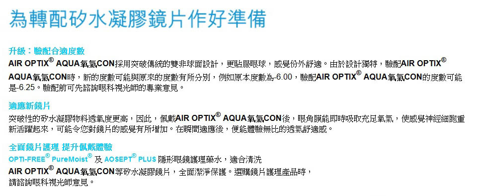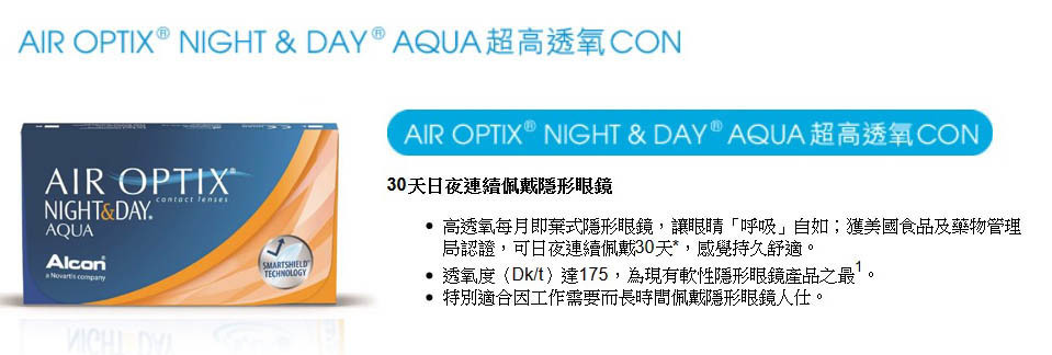 | 建議配戴模式 | 每月配戴,30天日夜連續佩戴隱形眼鏡 |
