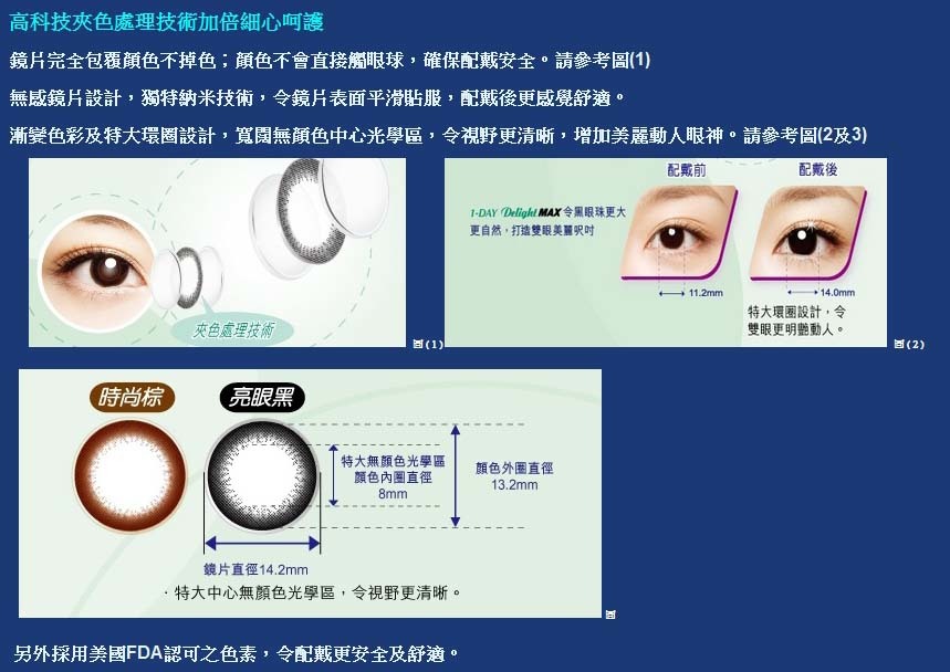 | 著色直徑 鏡片弧度 | 13.2mm 8.5mm |
