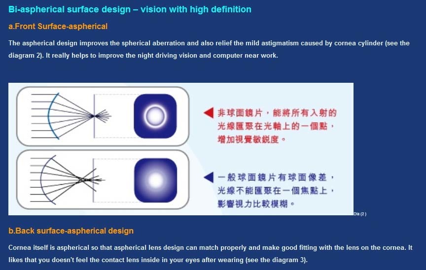 | Lens design | Double aspheric design |