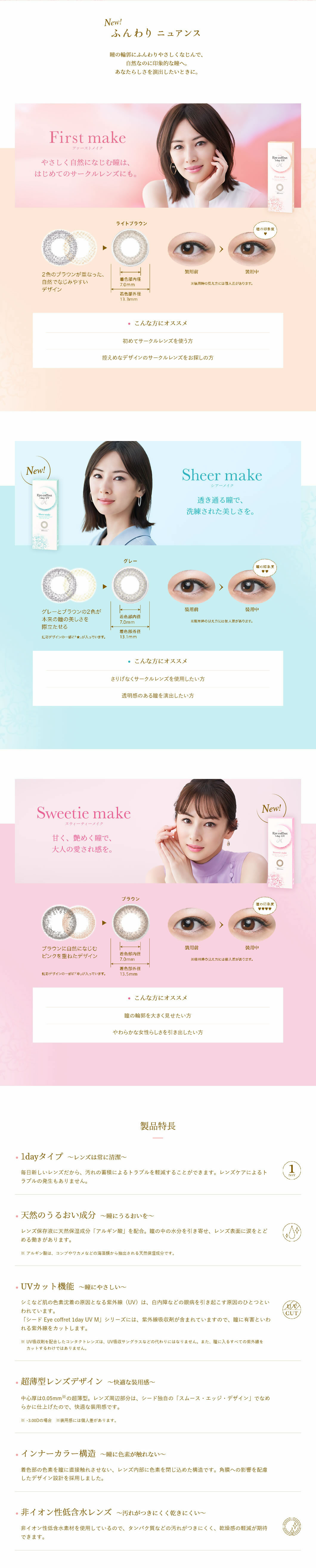 Daily disposable, 10-colors( Mystic make, Lively make, Base make, Natural make, Rich make, Grace make, First make, Casual make, Sheer make, Sweetie make ), 30 pcs / box